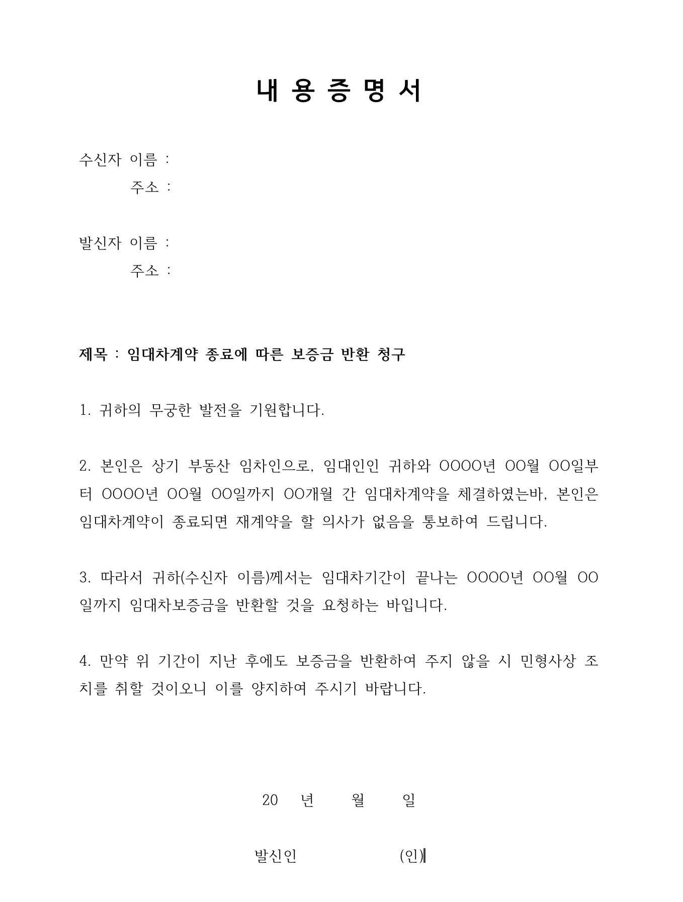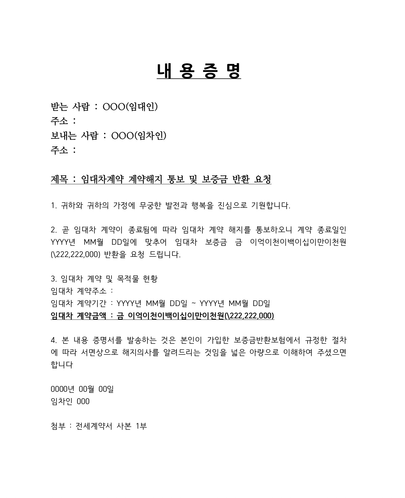 임대차계약 계약해지 통보 내용증명(빈서식).hwp